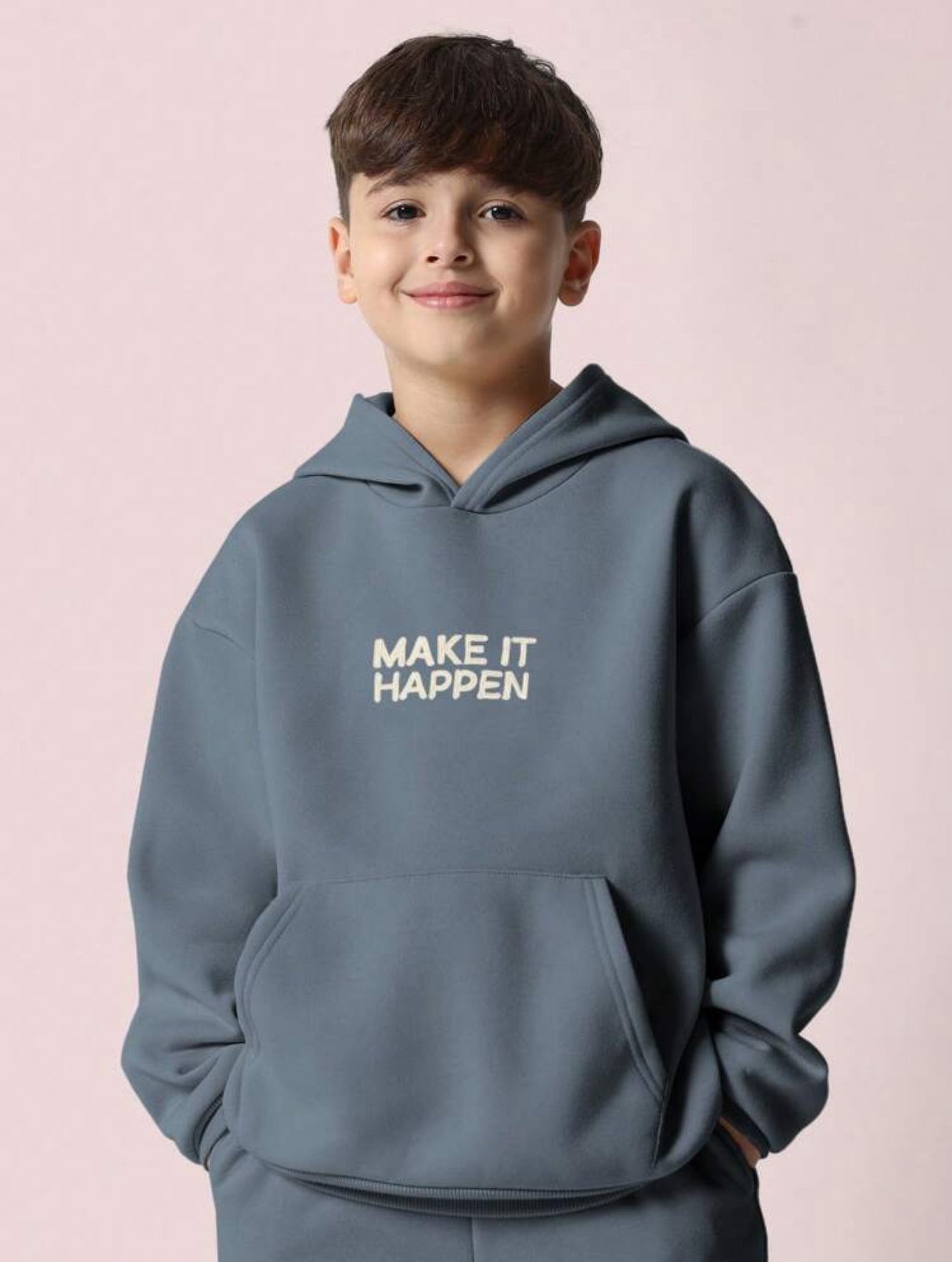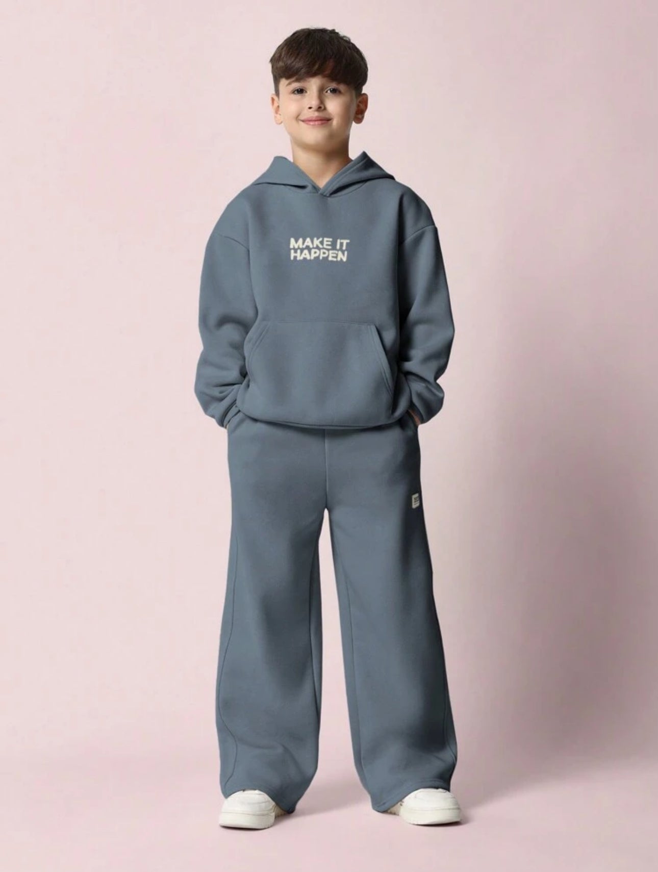 Make it happen—in style. The James Set comes in a cool steel blue tone with a "Make It Happen" graphic. Clean, confident, and comfy.