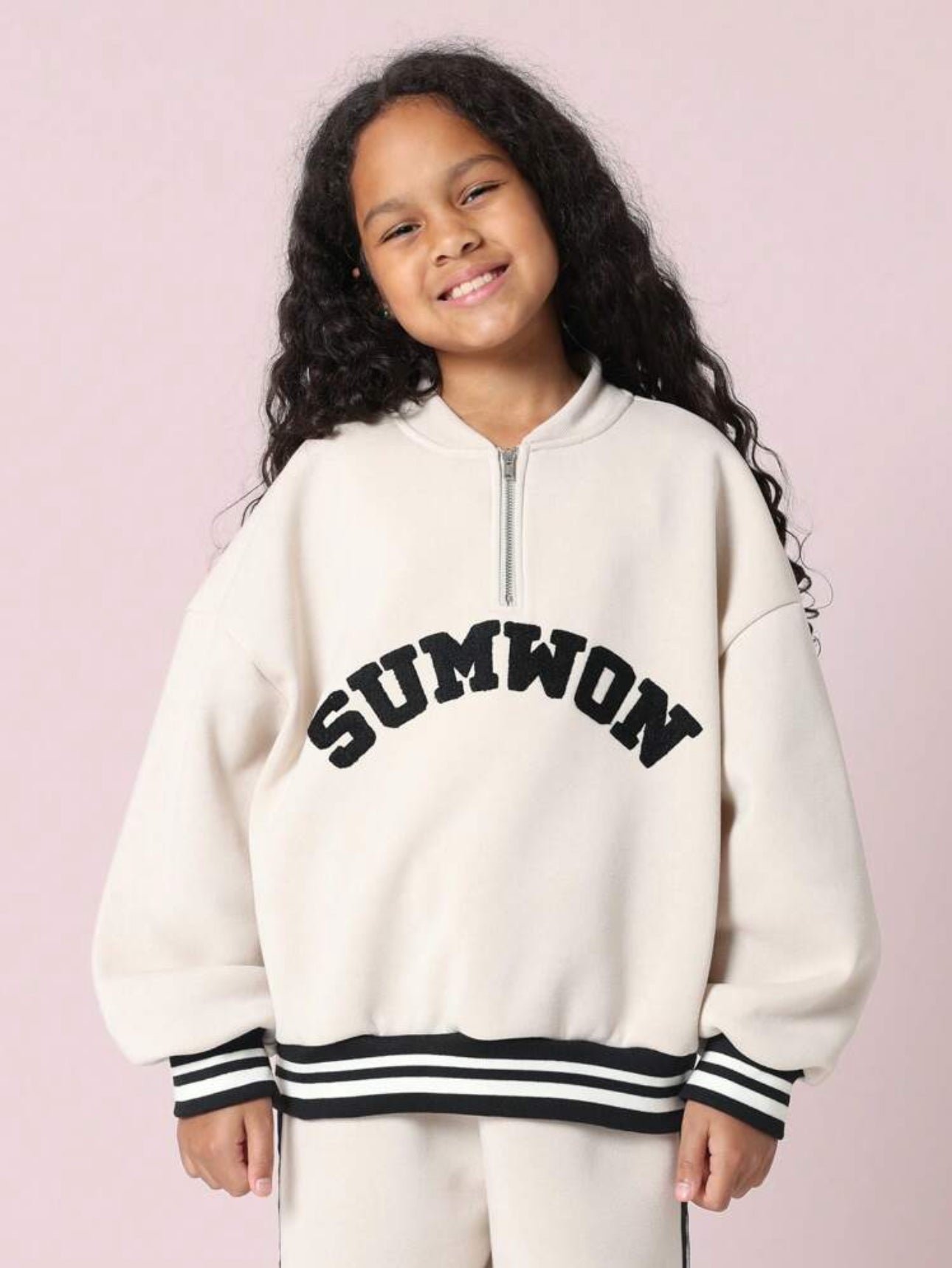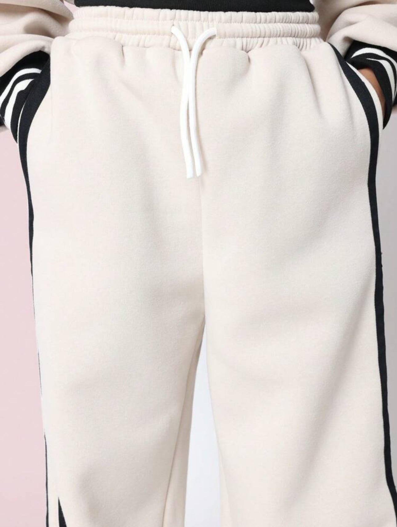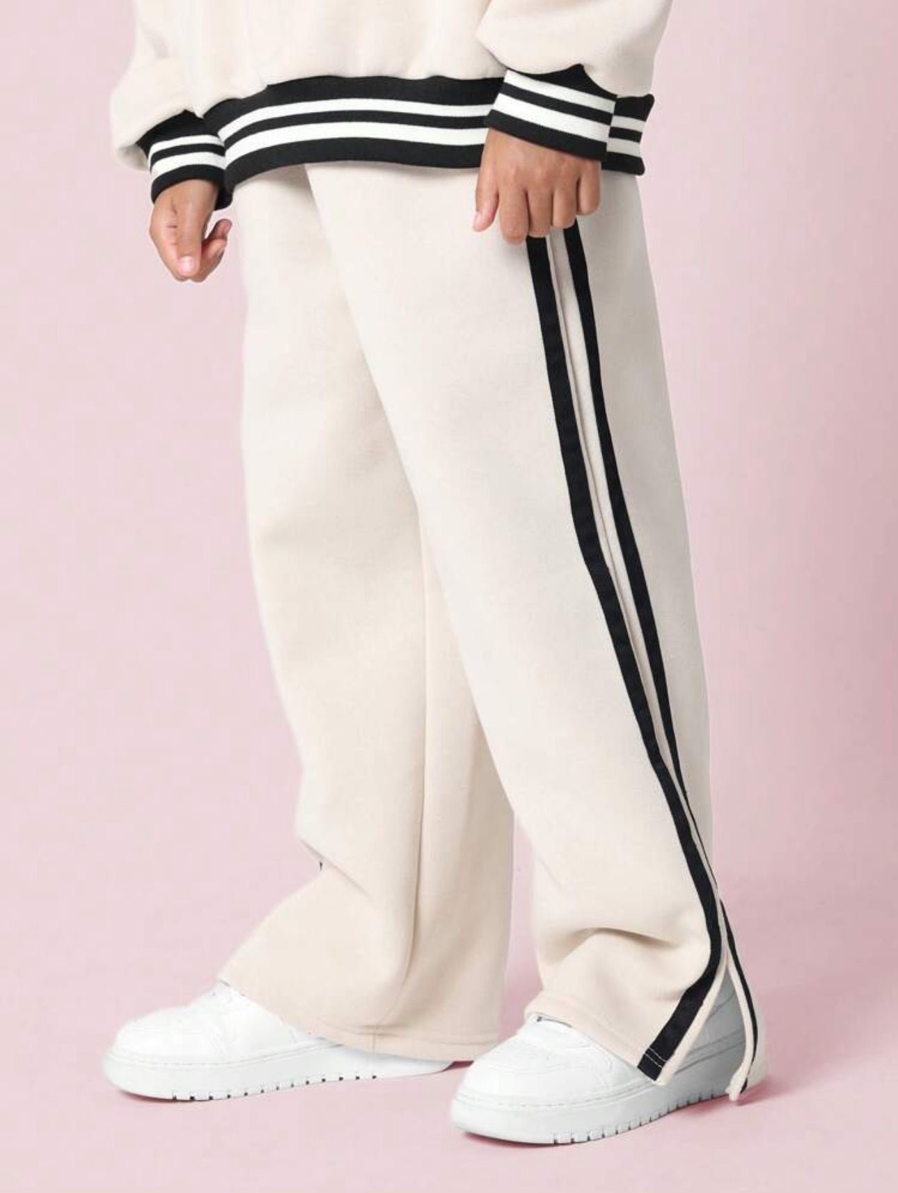 Vintage varsity vibes. The Kenya Set features bold black side stripes and a retro varsity-style sweatshirt with “London” print.